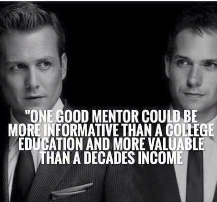 Harvey Spector and Mike Ross  have a classic mentor relationship. Harvey, the mentor brings experience and opportunity to the relationship while Mike, the mentee, brings fresh approaches, respect and a willingness to work hard. Mentors are traditionally volunteers and this makes finding a good one extremely rare. Coaches are in part filling this void in the professional world.